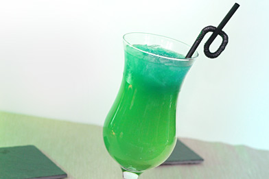 Verser la liqueur de melon vert et le triple sec dans un verre fantaisie.